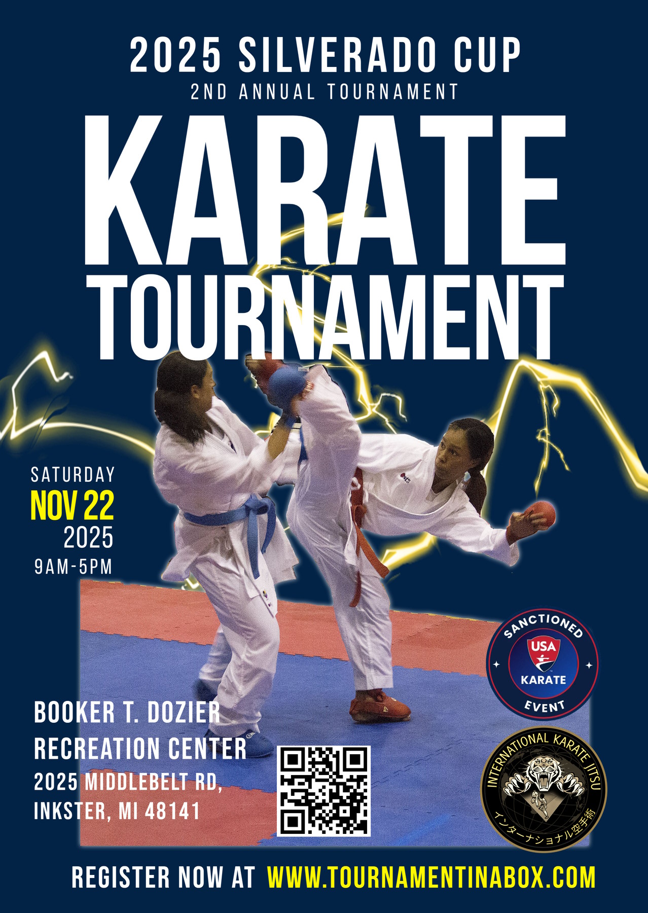 IMPORTANT USA Karate Requirement: As this is a sanctioned event, all competing athletes and coaches must hold a current USA Karate membership (minimum Level 2) before registering. The link above will direct you to our official registration partner (www.tournamentinabox.com) to complete the sign-up process.